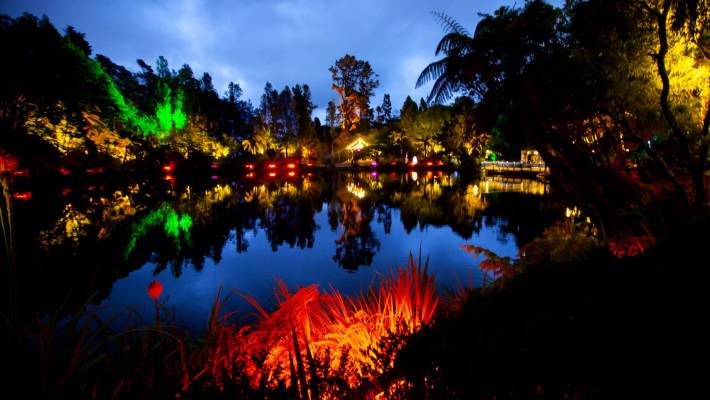 The park covers approximately 52ha and contains a diverse range of landscapes, including many plant collections, exotic specimen trees, formal gardens, lakes and walking trails through native bush. To mark the opening of the park in 1876 an oak for Great Britain, a puriri for New Zealand, a Norfolk Island pine for the South Pacific islands and a Monterey pine for America were planted and are still growing on Cannon Hill. The park includes the Fernery and Display Houses, a facility recognised internationally by horticulturalists for its house design, propagation expertise and consistently high-quality plant displays.